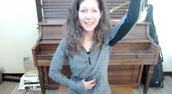 Gentle, seated with slow hand movements.